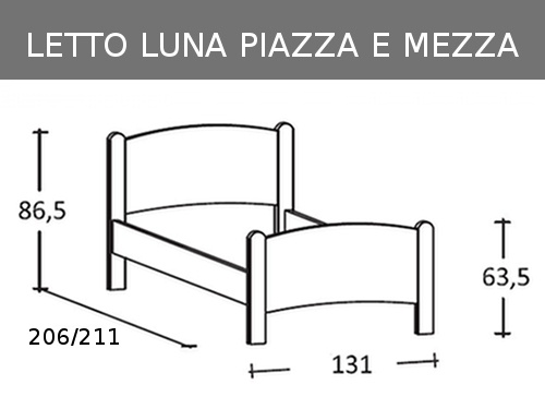 DIMENSIONI LETTO PIAZZA E MEZZA IN MASSELLO LUNA: